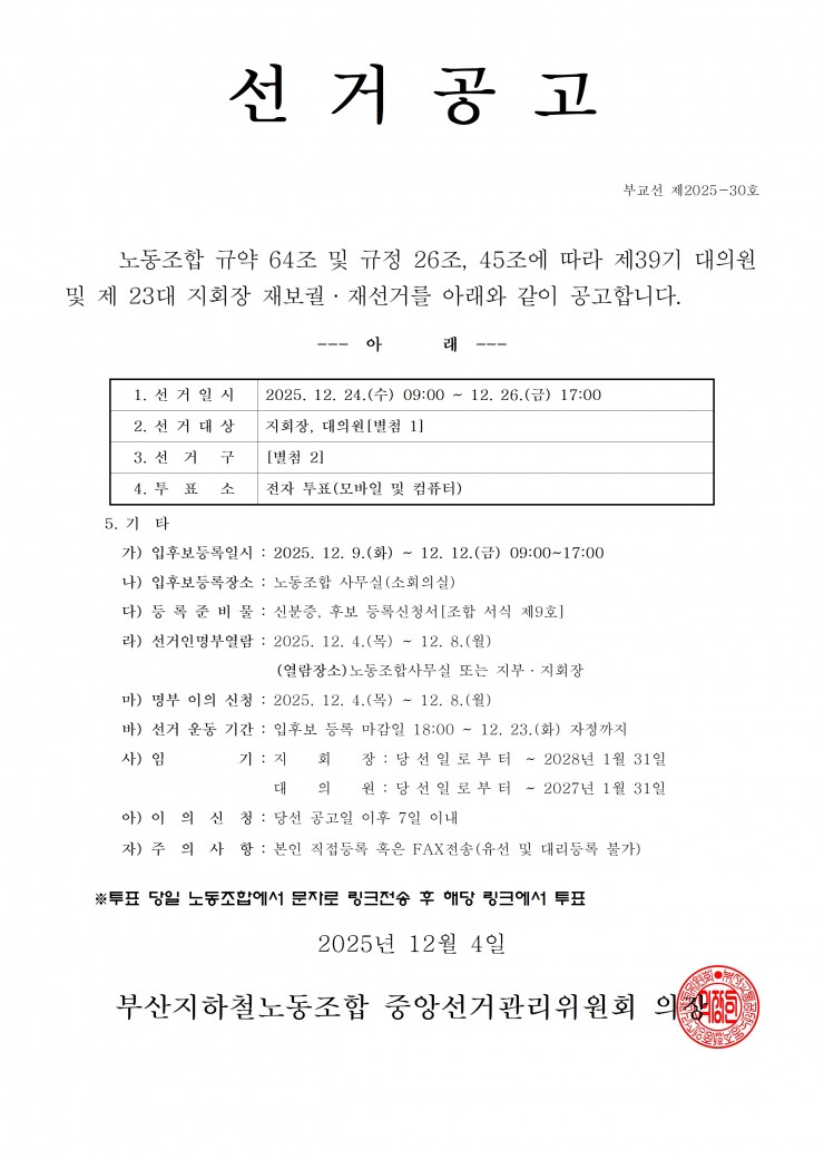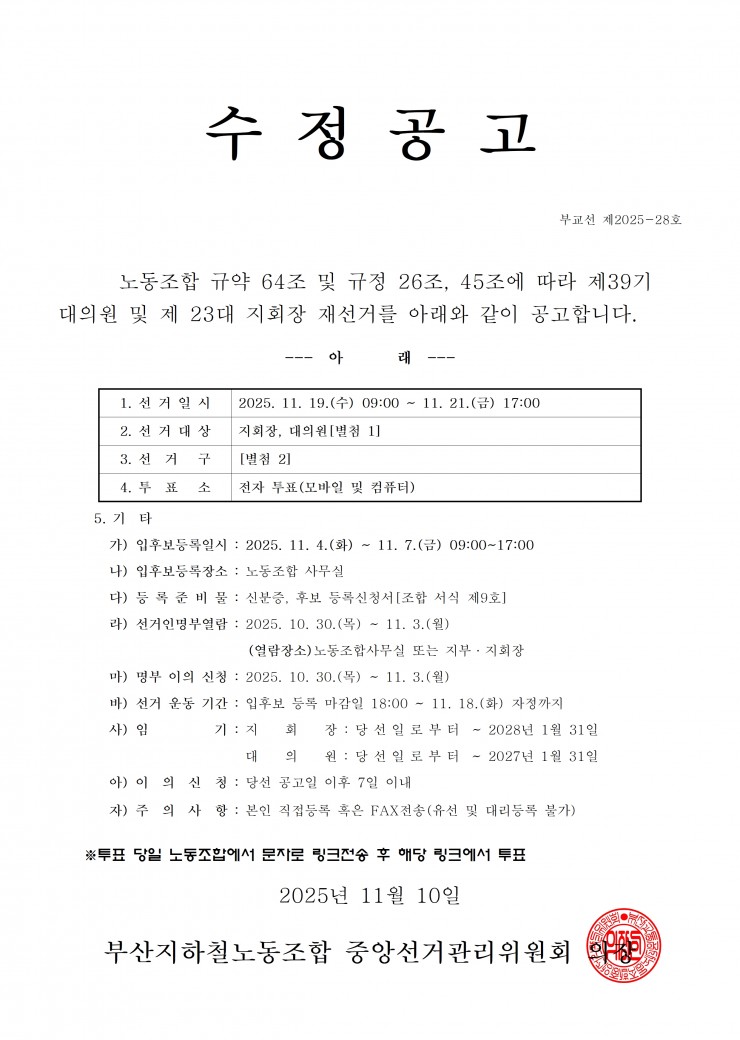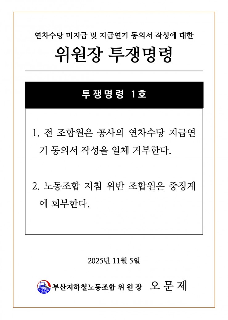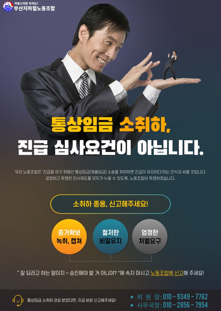 상호명 : 부산지하철노동조합  사업자번호 : 604-82-02975  대표자명 : 오문제  대표번호 : 051-678-6190