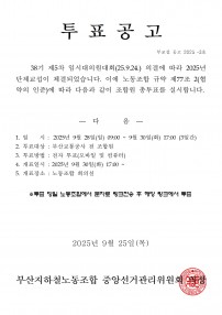 [부교선 공고 2025-21호] 2025년 운영서비스 단체협약 체결에 따른 조합원 총투표 공고(2025.10…